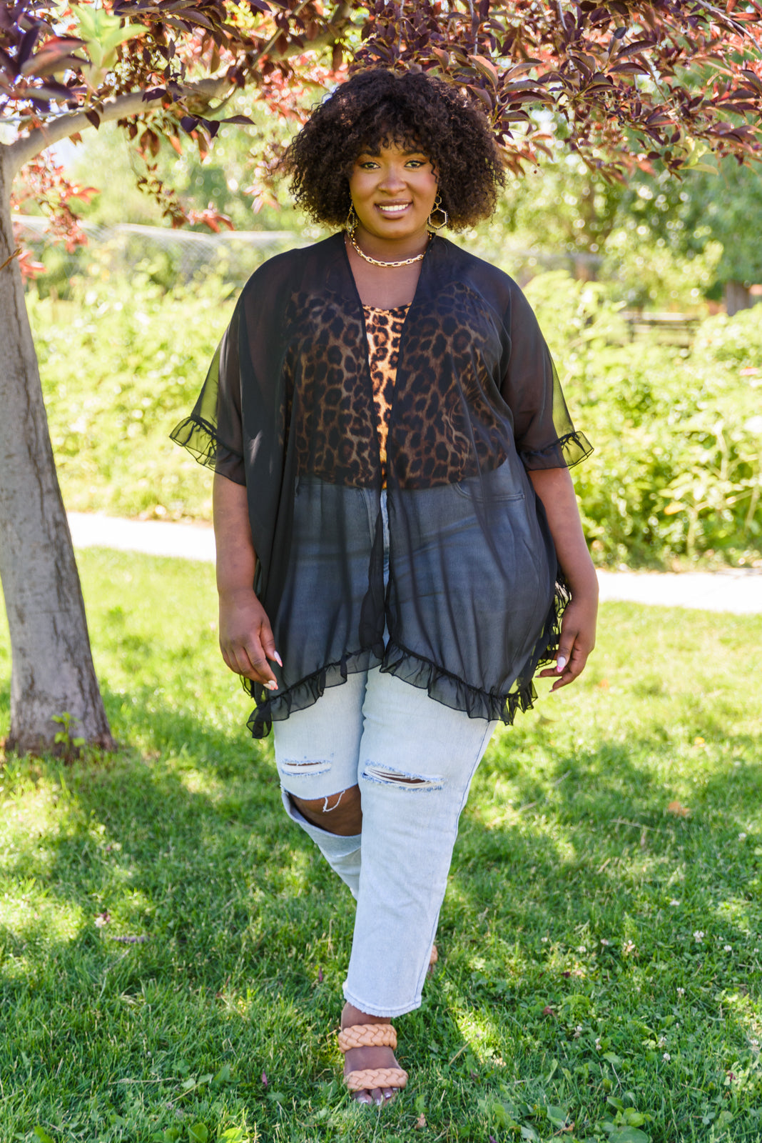 Give a chic upgrade to your look when you pair it with the Leave You Guessing Kimono! The details on this stunning piece will make you feel elegant and girly! We haven't stopped obsessing over the ruffle trim, drapey silhouette, elbow length kimono sleeves, and rounded hem. This looks amazing paired over a black mini dress and heels!