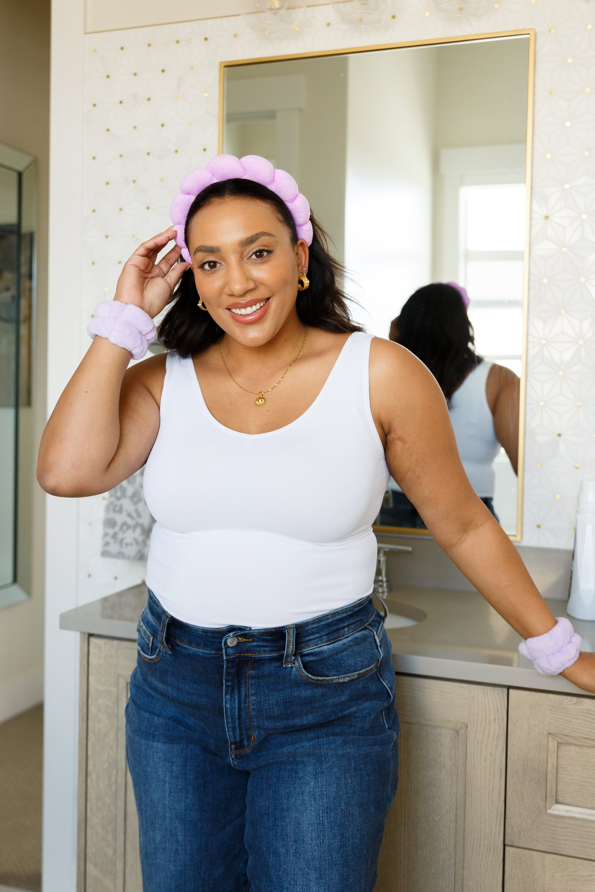 This trending braided sponge headband is covered in highly absorbent terry cloth to soak up moisture as you wash your face or apply your favorite skincare. Convenient wristbands catch drips from running down your arms!