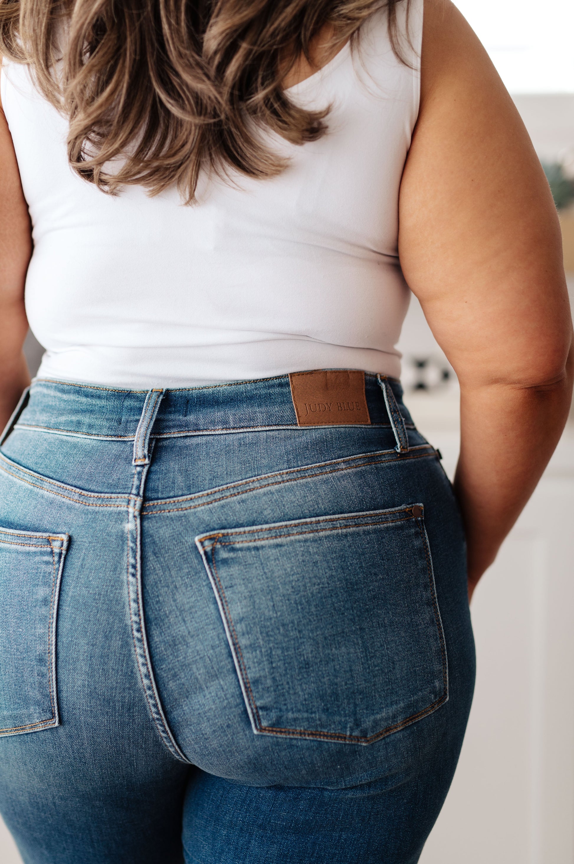 Look effortlessly stylish in our High Rise Distressed Straight Jeans from Judy Blue. This timeless denim design features a high rise, distressed knees, raw hemline, and medium wash for a classic look. Perfect for any style.