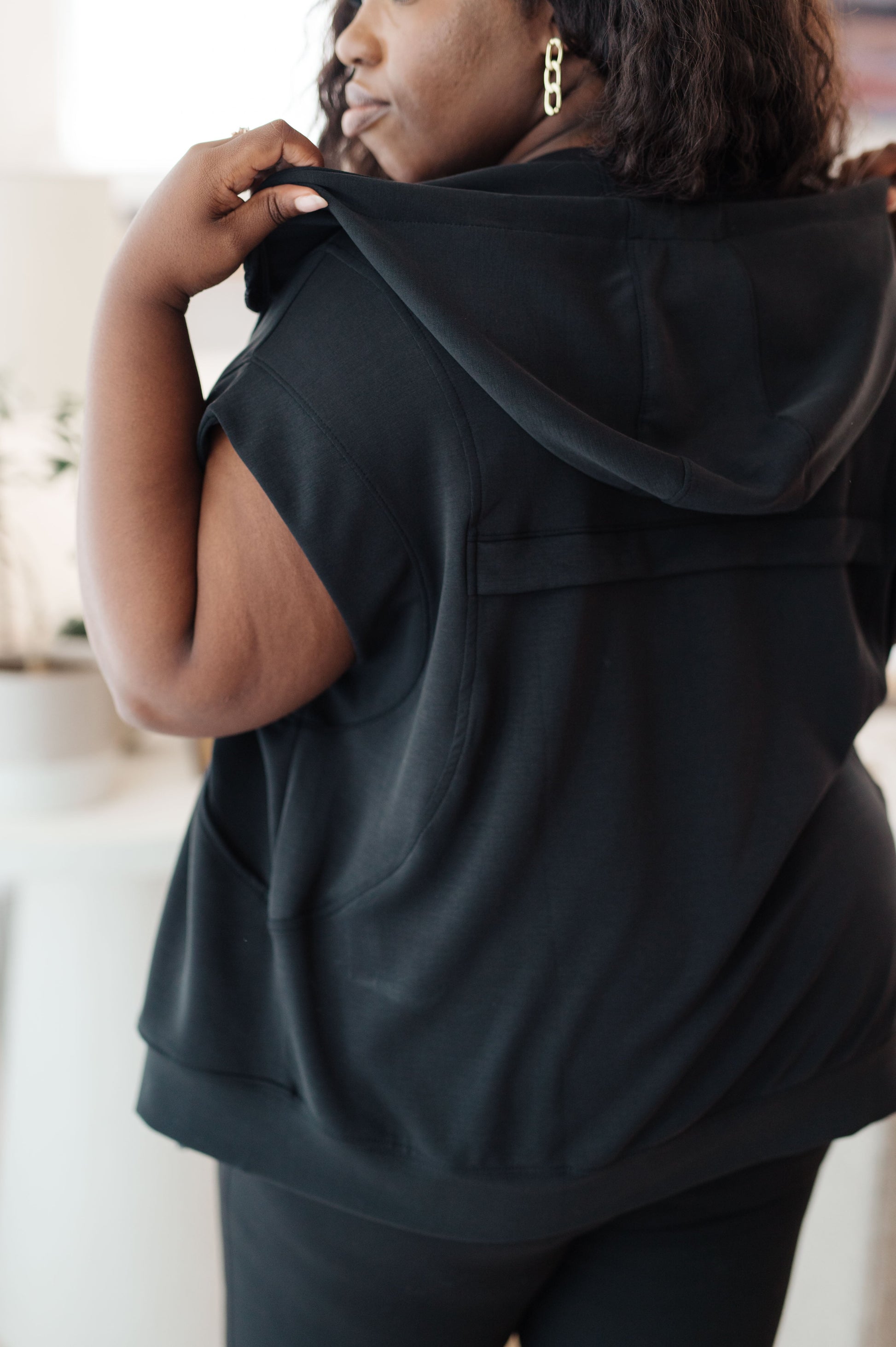 Stay comfortable and stylish in our Still Moving Sleeveless Hoodie. Crafted from ultra-soft modal micro scuba fabric, this hoodie features a zip front, sleeveless design, contour seams, pockets, and a hood for a perfect athletic layer.