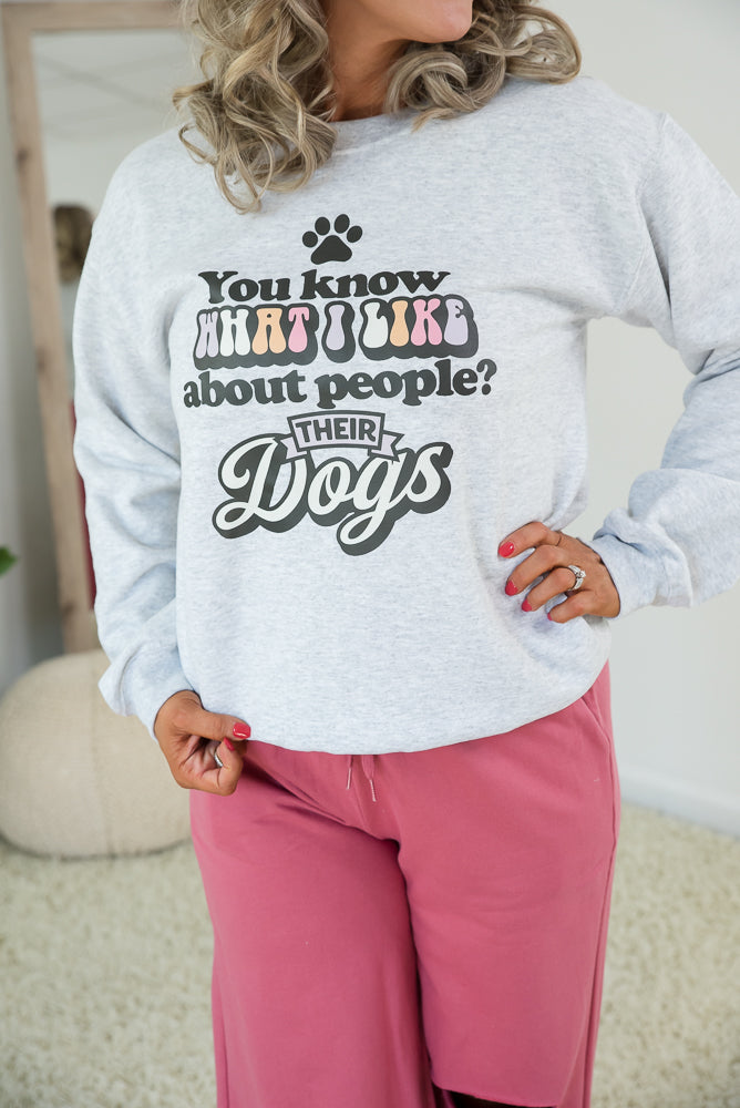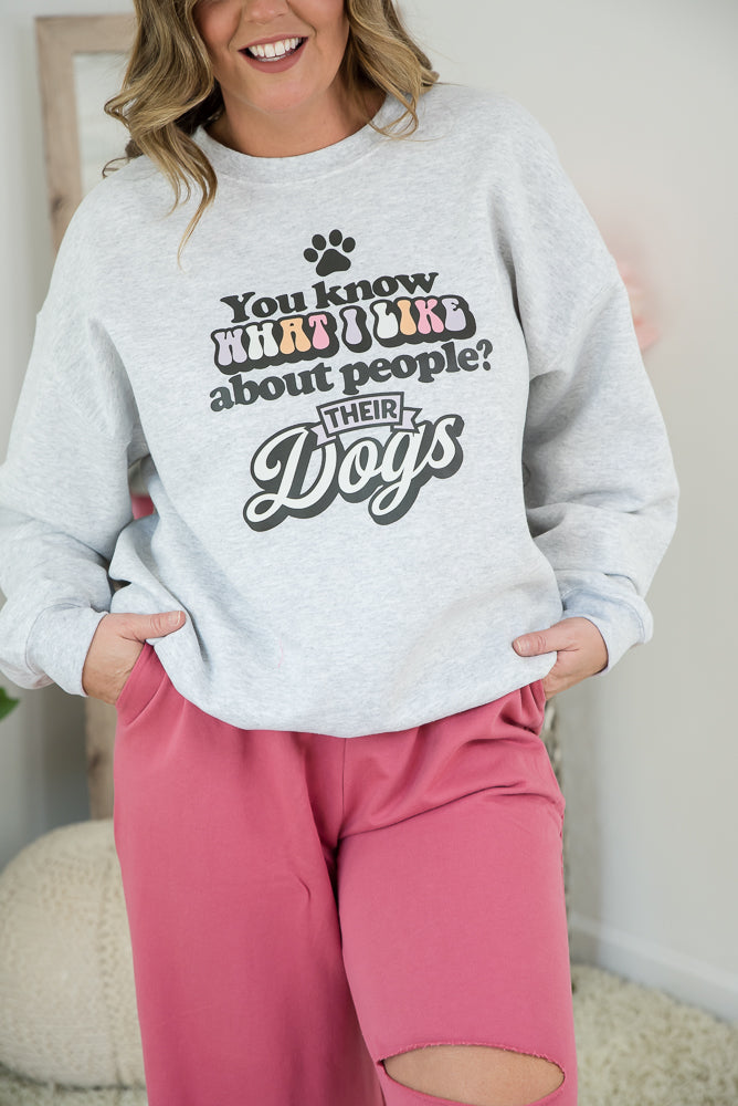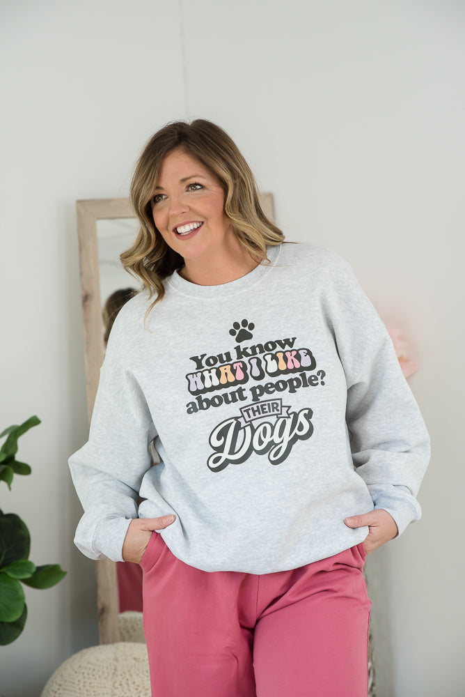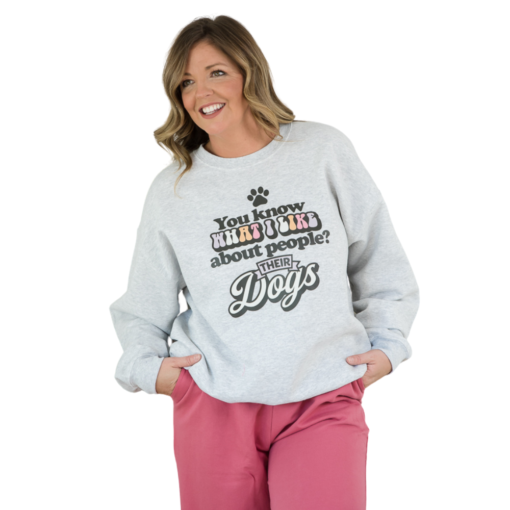 You know what I like about people? Their dogs. Their amazing, happy, loving fur babies. Wear this graphic sweatshirt year round with jeans or shorts.